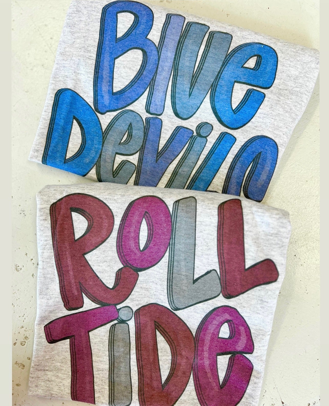 Sublimation design on ash or white Gildan Dri-Blend T-Shirt.