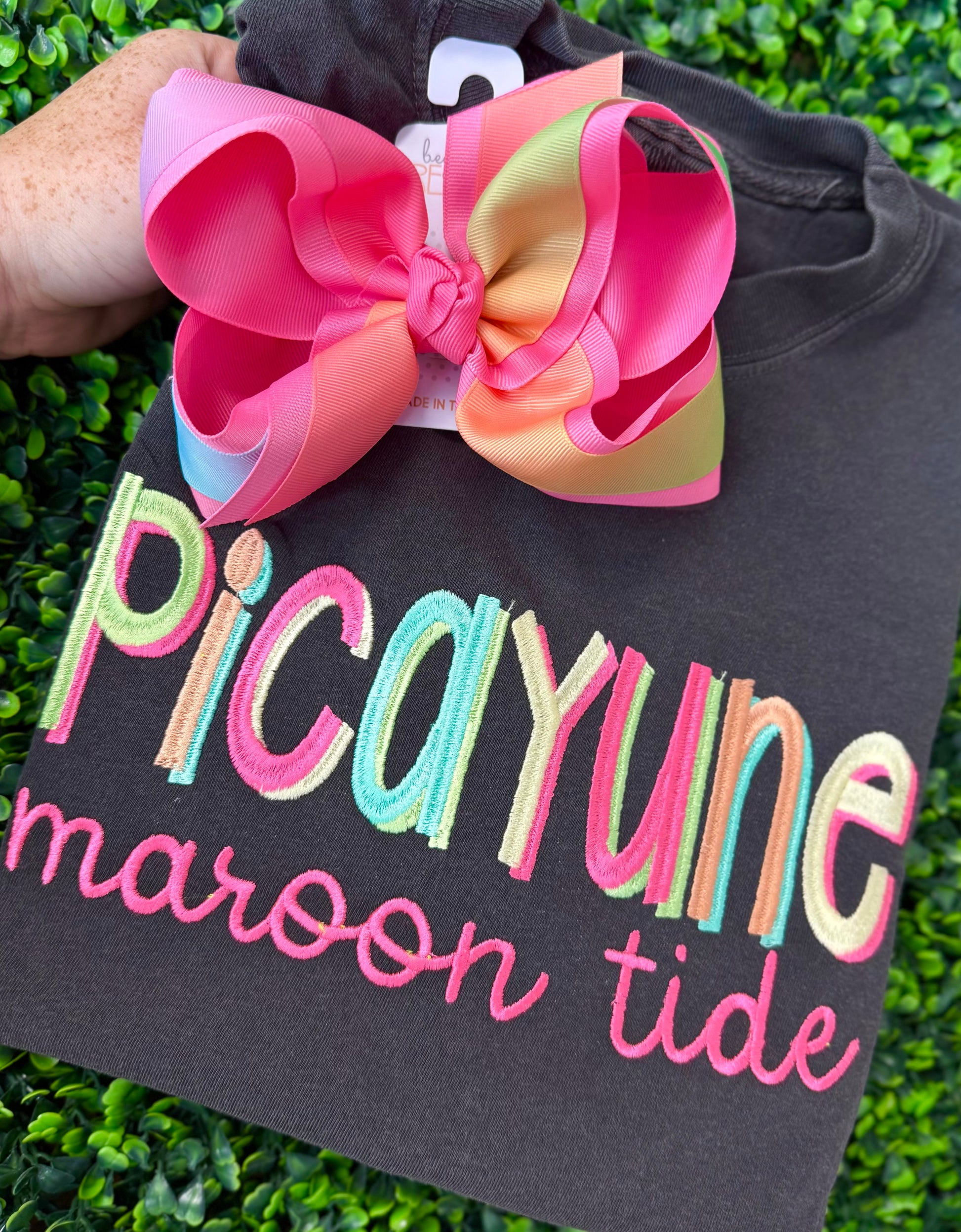 Pepper Comfort Color t-shirt with your school name in this fun, two-toned font!